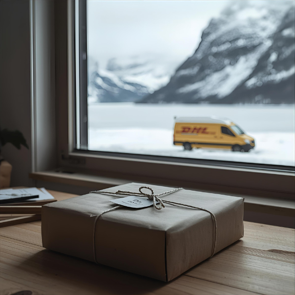 Gjennom vårt samarbeid med DHL Express tilbyr vi rask og rimelig global levering – trygt og vakkert pakket fra vårt studio i Norge.